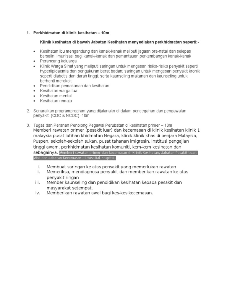 Tugas jbt di klinik kesihatan. Senarai tugas skop kerja pembantu perawatan kesihatan. Mengambil dan merekodkan data pesakit dan tugas-tugas lain yang seumpamanya. Senarai tugas pembantu perawatan kesihatan di klinik kesihatan.
