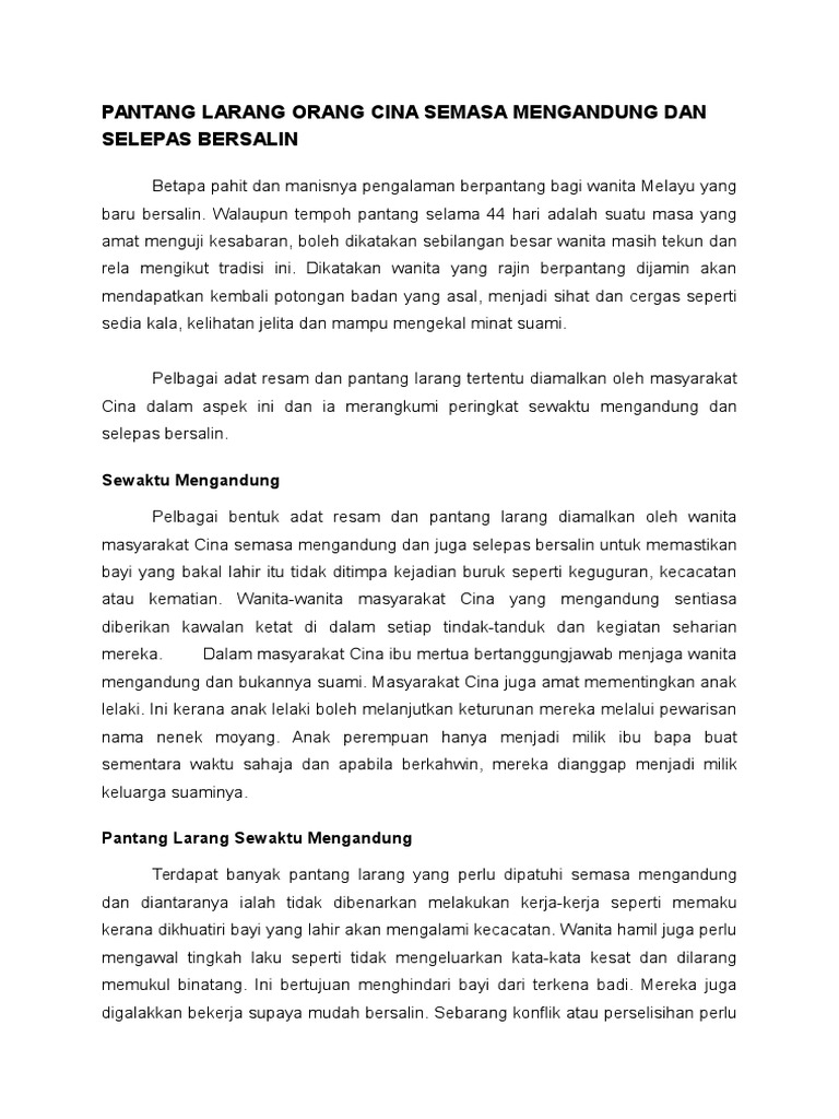 Pantang Larang Kaum Cina Selepas Bersalin Pdf