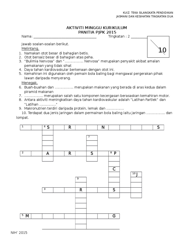 Teka silang kata pendidikan jasmani dan kesihatan 2. Untuk pengetahuan anda ini hanya pendahuluan sahaja dan ada lebih. Sebelum itu mengenai ini mari kita fahami lebih tepat apa yang dikatakan dengan teka silang kata. Untuk pengetahuan anda berikut hanya mukaddimah sahaja dan ada lebih.