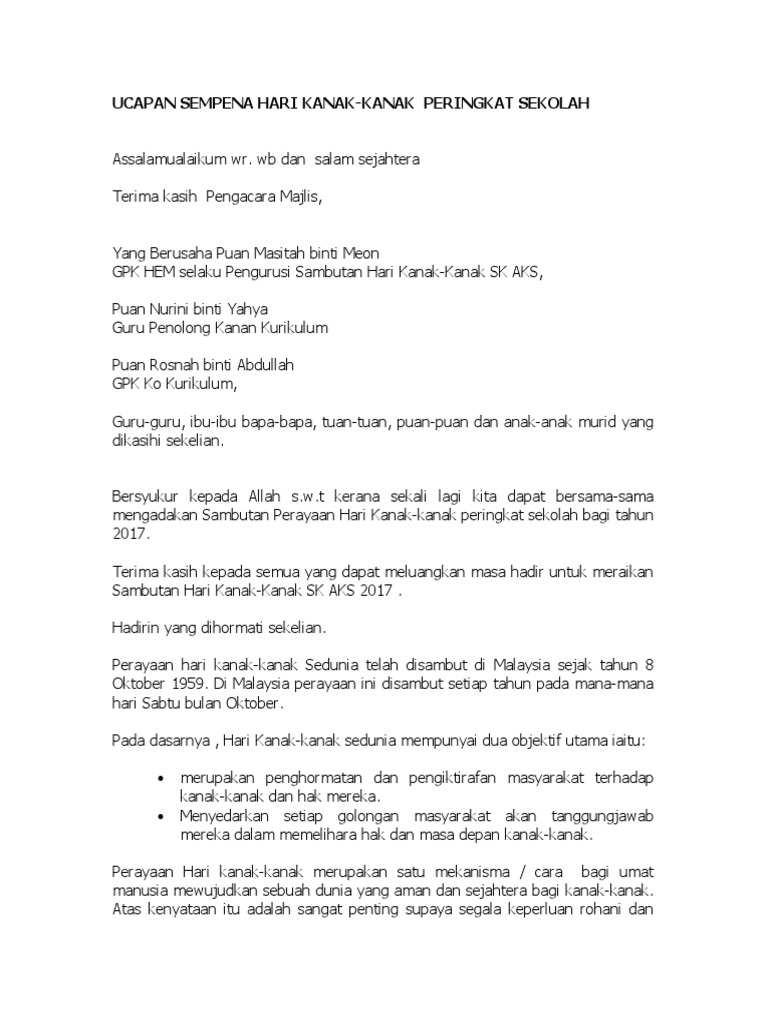 Ucapan Sempena Hari Kanak Kanak Skaks 2017 Pdf